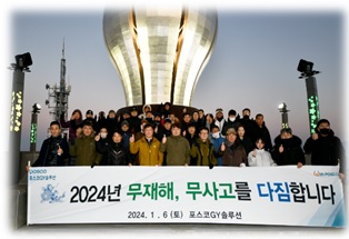 포스코지와이솔루션은 갑진년 새해를 맞아 '24년이 무재해 원년이 되기를 다짐하는 행사를 새해 첫 주말 광양 구봉산 전망대에서 실시하였다. 열심히 달려온 2023년! 그리고 앞으로가 기대되는 2024년!
