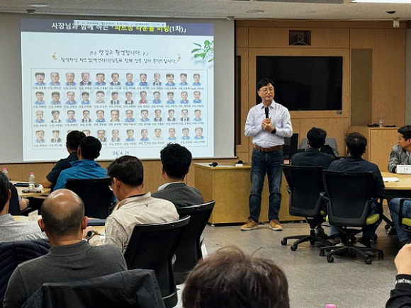 포스코GY솔루션은(대표이사 윤훈) 회사의 미래성장과 변화에 있어 중요한 역할을 수행하는 파트장 직책자 대상으로 대표이사 주재 타운홀 미팅을 4월 26일 부터 4회에 걸쳐 실시하고 있습니다.